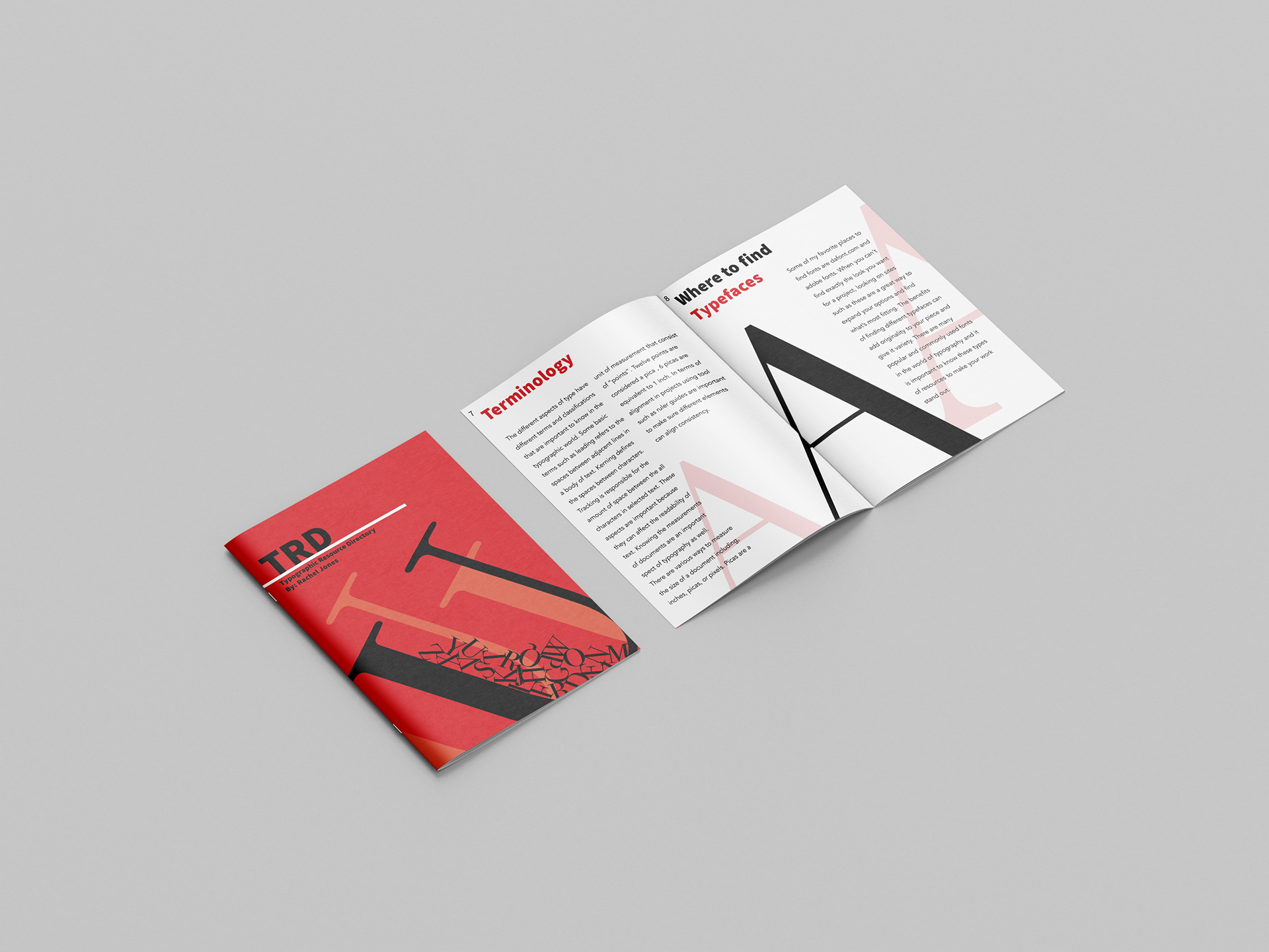 A curated informational booklet describing the design process, history, and cultural significance of various typefaces.. Created using Adobe InDesign and Adobe illustrator. Mockup Image by @rawpixel.com on Freepik